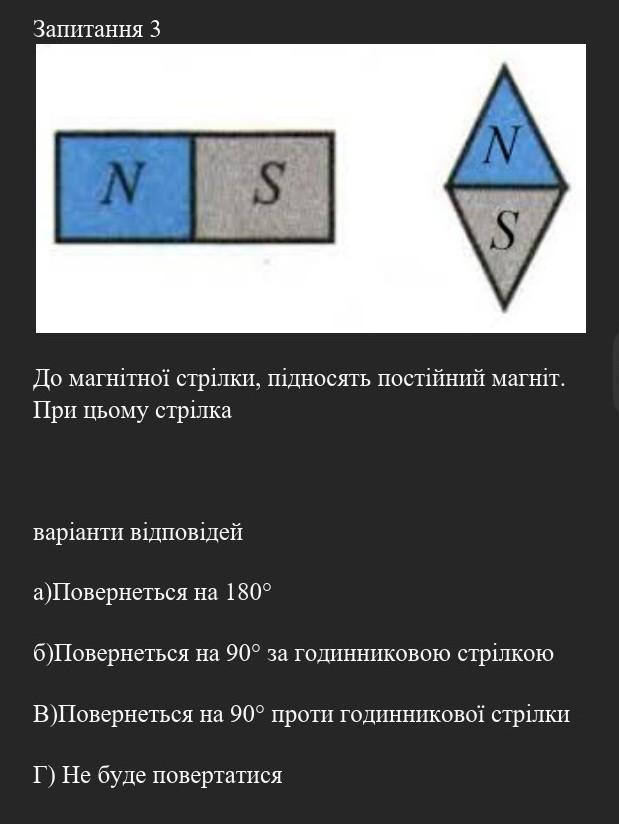 Ответ - В (на 90 градусов против часовой стрелки). Так как притягиваются разноименные полюса магнитов