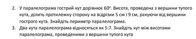 2 . У паралелограмі ABCD ∠A = 60° ; BH⊥AD ; AH = 5 см ;