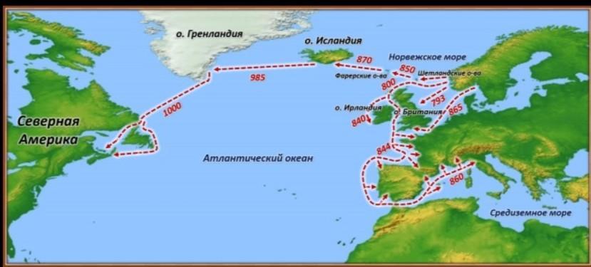 Они проплыли вдоль Атлантического океана, остановились на Исландии, Ирландии, Британии и на тот момент не открытой Америке