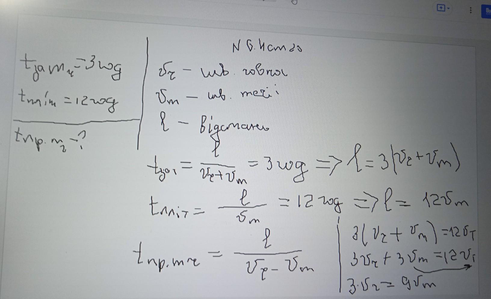 Моторний човен пройшов відстань за течією річки за 3 години, а пліт - за 12 годин. За який час моторний човен подолає зворотний шлях?
