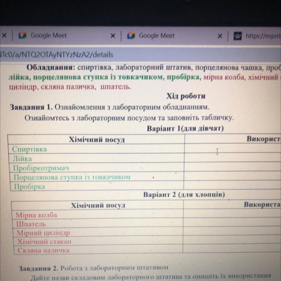 5) Скляна паличка - використовується для перемішування твердих , сипучих , жидких речовин