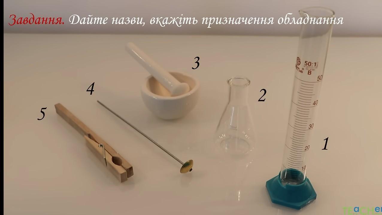 1.Мірний циліндр-для вимірювання об'єму рідини