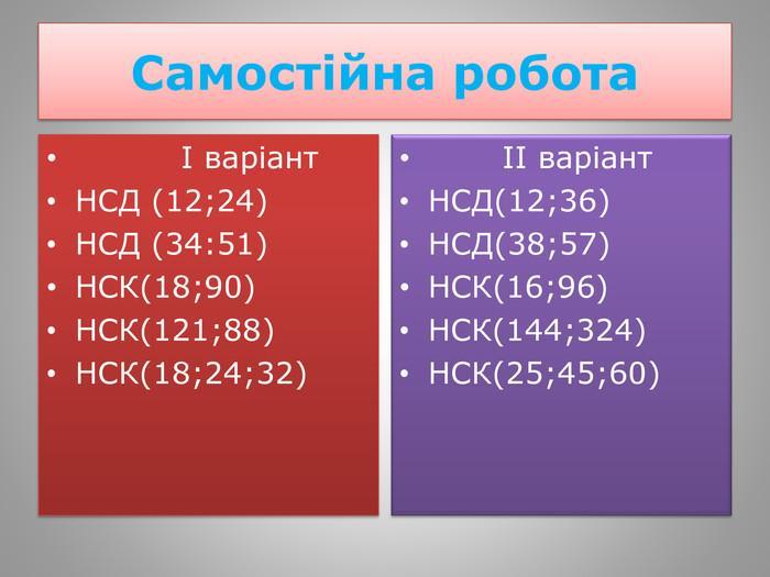 НОД (12; 36) = 2 • 2 • 3 = 12