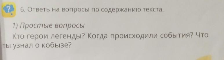 6. Ответь на вопросы по содержанию текста. 1) Простые вопросы Кто герои легенды? Когда происходили события? Что ты узнал о кобызе?тема Чёрная бура Ойлыбая
