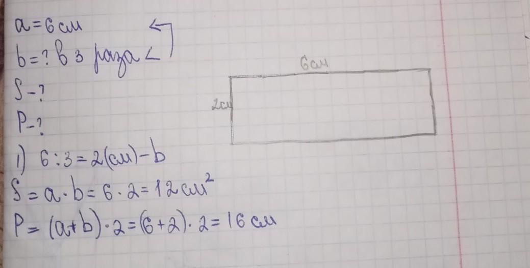 б) Длина прямоугольника 9 см, а ширина в 3 раза меньше длины. Начертите этот прямоугольник и найдите его периметр и площадь. deu
