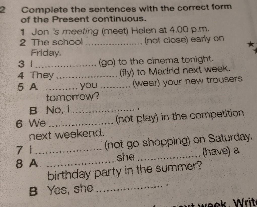 1. Aren’t closing. 2 I’m going to. 3. Are flying. 4 Are wearing, I’m not. 5. Aren’t playing. I’m not going to shopping. Последнее не знаю