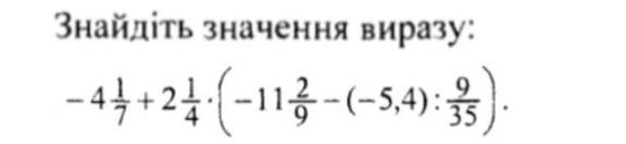 -4 1/7 + 2 1/4 * ( -11 2/9 - ( -5,4) : 9/35) = 17 6/7