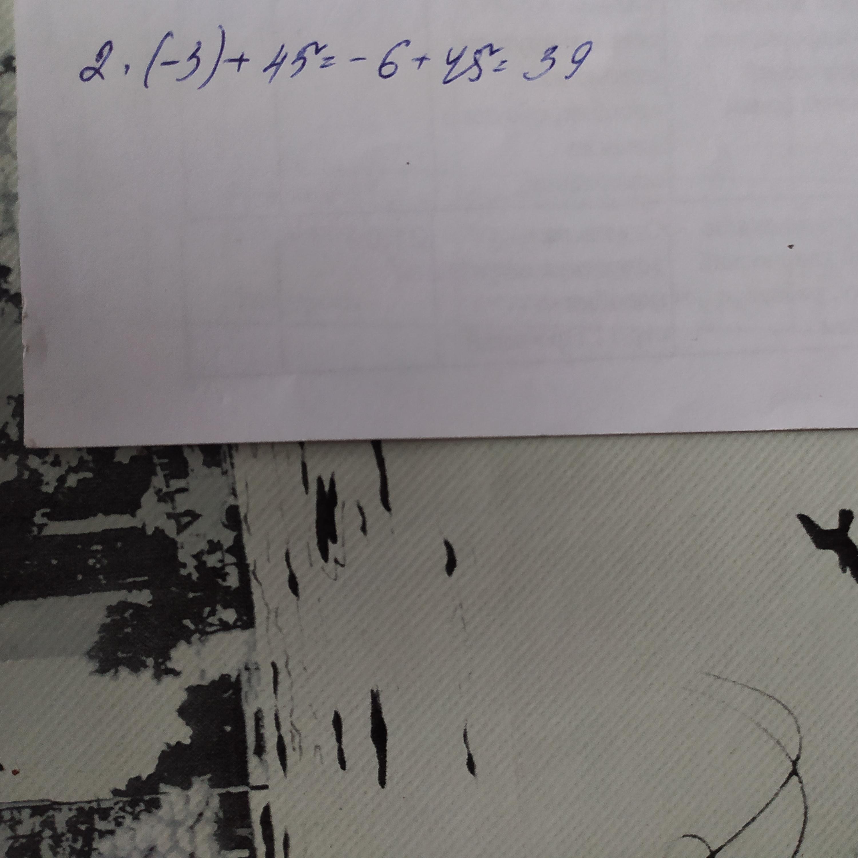 Пояснення: 2 * (-3) + 45 = -6 + 45 = 39