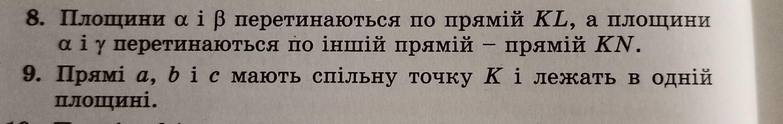 площина альфа і бета перетинаються по прямій KL, а площини альфа і гамма