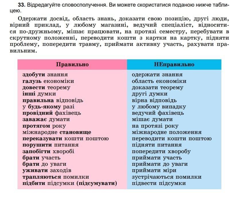 здобути досвід, галузь знань, довести свою позицію, інші люди, правильний приклад, у будь-якому магазині, провідний спеціаліст, ставитися по-дружньому, заважає працювати, протягом семестру, перебувати у скрутному становищі, переказувати кошти з картки на карту, порушити проблему, запобігти травмі, брати активну участь, вважати правильним.
