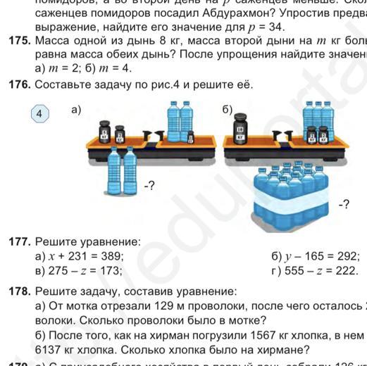 б) 3 бутылки и 2 гири по 2 кг весят также, как и 10 килограммовая гиря. Сколько весят 12 бутылок?