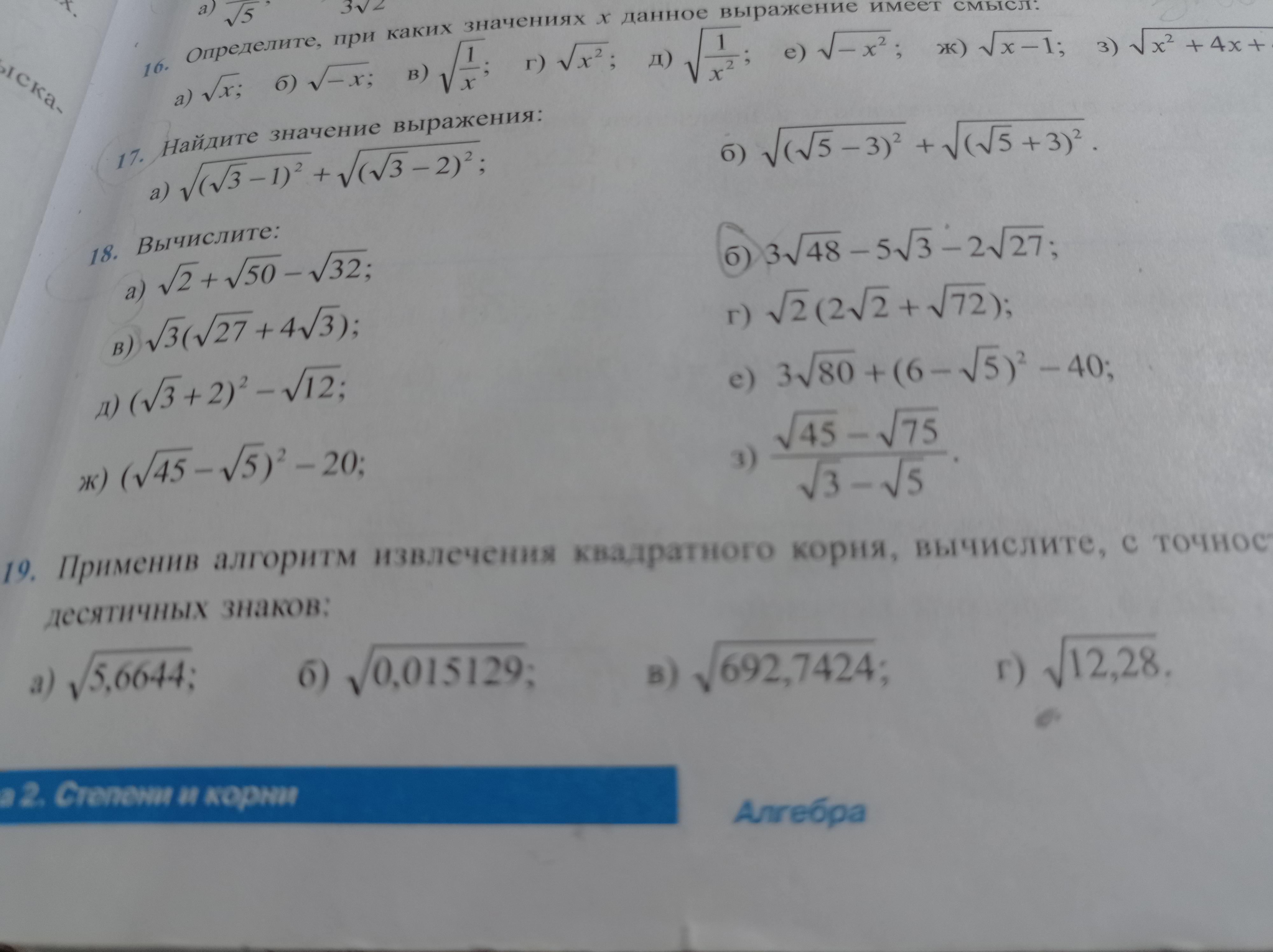 18 . б) 3√48 - 5√3 - 2√27 = 3√( 16 * 3 ) - 5√3 - 2√( 9 * 3 ) = 3 * 4√3 -