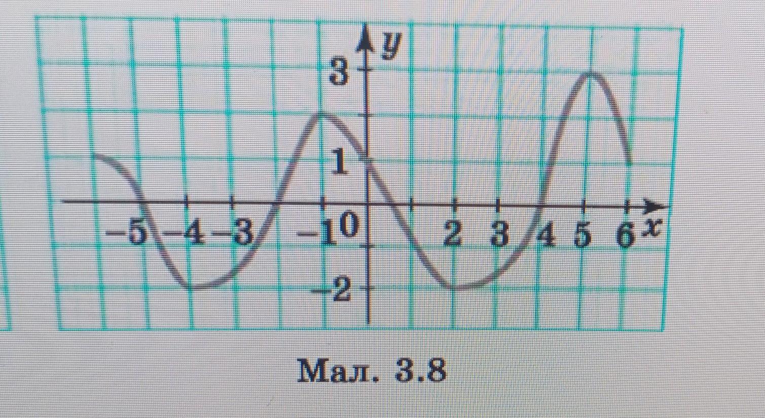 На малюнку 3.8 зображено графік функції, визначеної на проміжку [-6; 6]. Знайдіть нулі функції та проміжки зна- косталості.