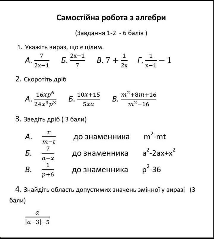 1) Целое выражение не содержит переменную в знаменателе, поэтому целым будет выражение Б) : .