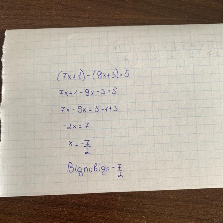 (7x + 1) - (9x + 3) = 5