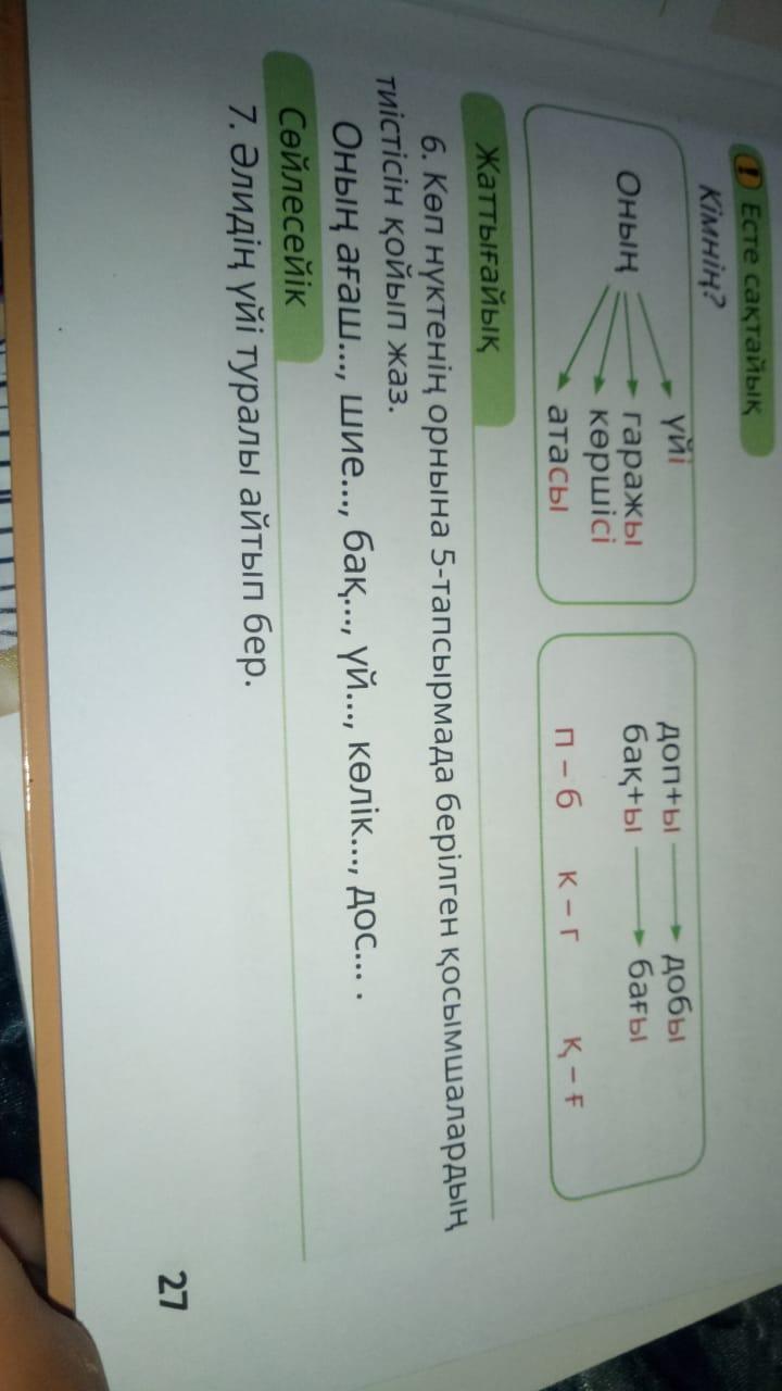 6. Оның ағашы, шиесі, бақшасы, үйі, көлігі, досы.