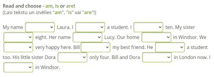 My name is Laura. I am a student. I am ten. My sister is eight. Her name is Lucy. Our home are in Windous. We are very happy here. Bill is my best friends . he is a student too. His little sister Dora is onle Four. Bill and Dora are in london now. I am in Windous
