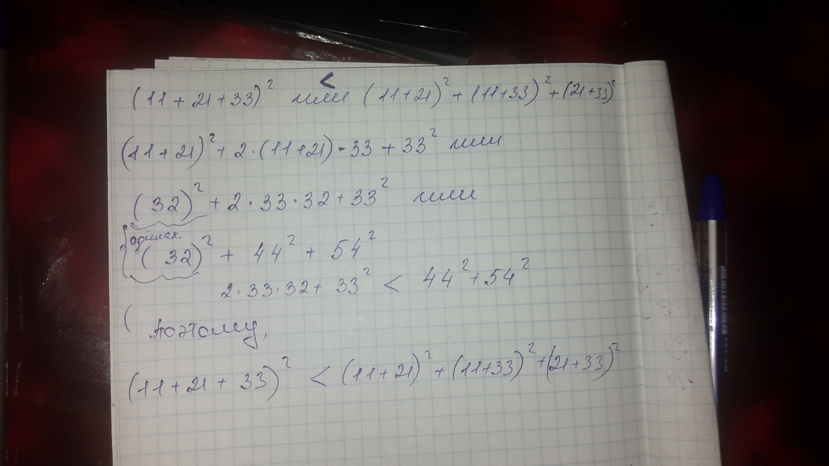 (11+21+33)^2 < (11+21)^2+(11+33)^2+(21+33)^2 в правой части числа больше