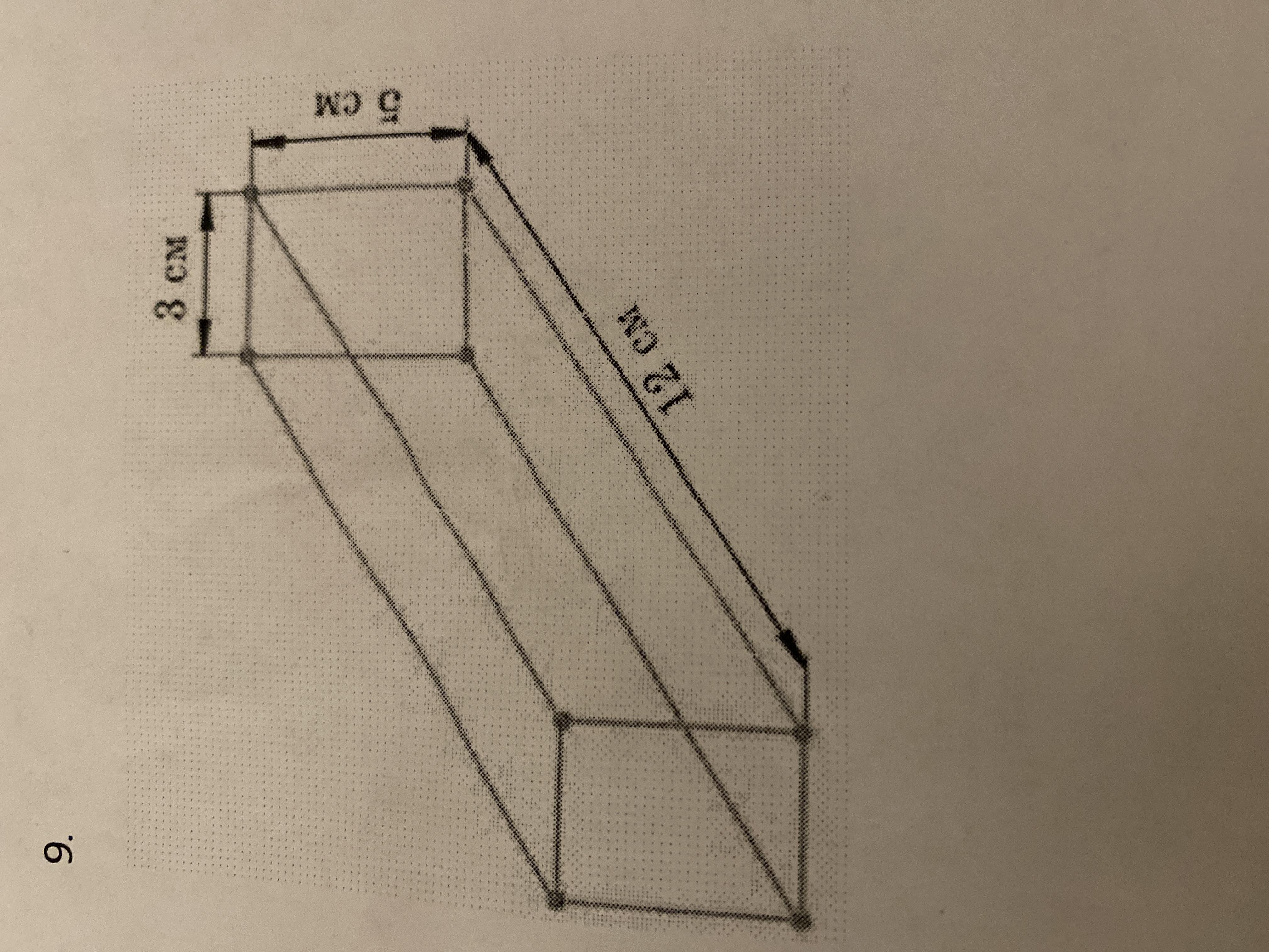 Объем равен: V = a * b * h = 12 * 5 * 3 = 180 (см3)