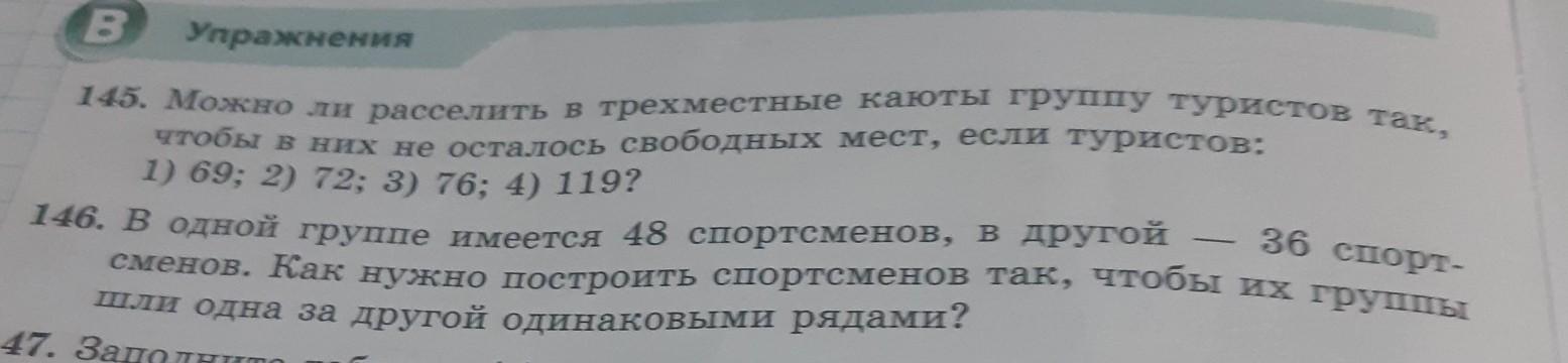 145.Можно ли расселить в трёхместные каюты группу туристов так, чтобы в них не осталось свободных мест, если туристов: