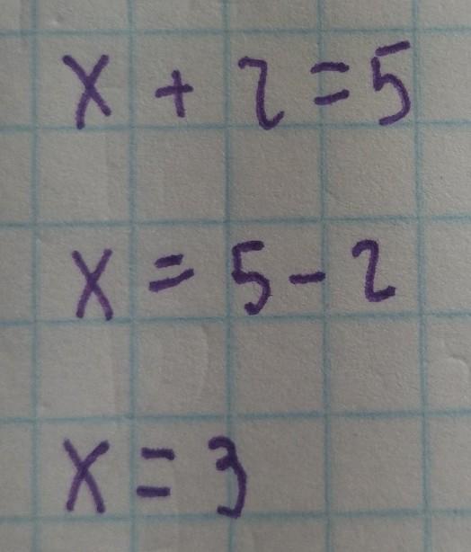 x+2=5 коли є + то потрібно віднімати як показано на фото,