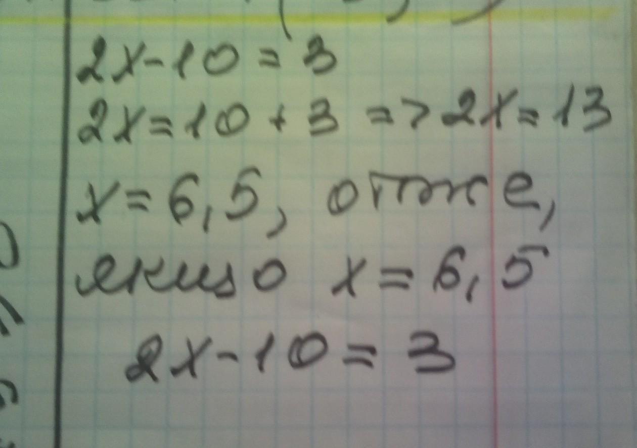 при якому значенні змінної x значення виразу 2х-10 дорівнює 3?