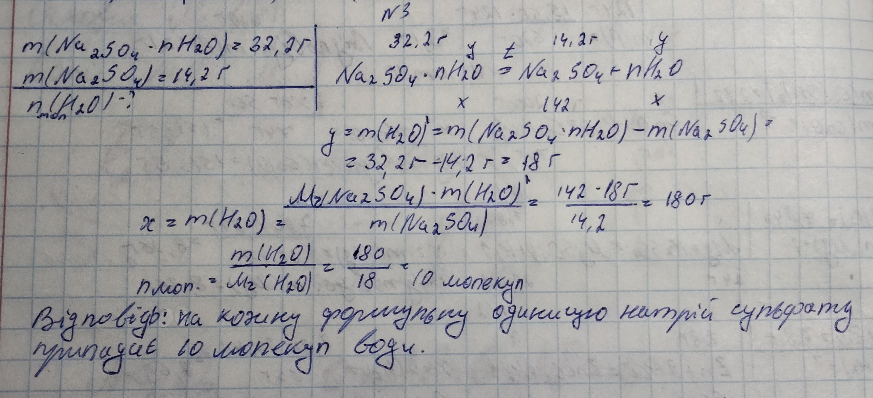 Кристалогідрат Na2SO4 ∙ nН2О масою 32,2 г прожарили. Добули безводну сіль масою 14,2 г. Визначте число молекул води у кристалогідраті.