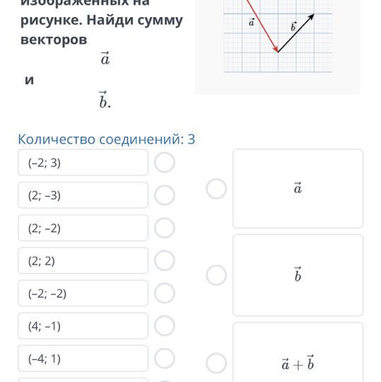 Определи координаты векторов,изображенных на рисунке. Найди сумму векторов a и b (онлайн мектеп)