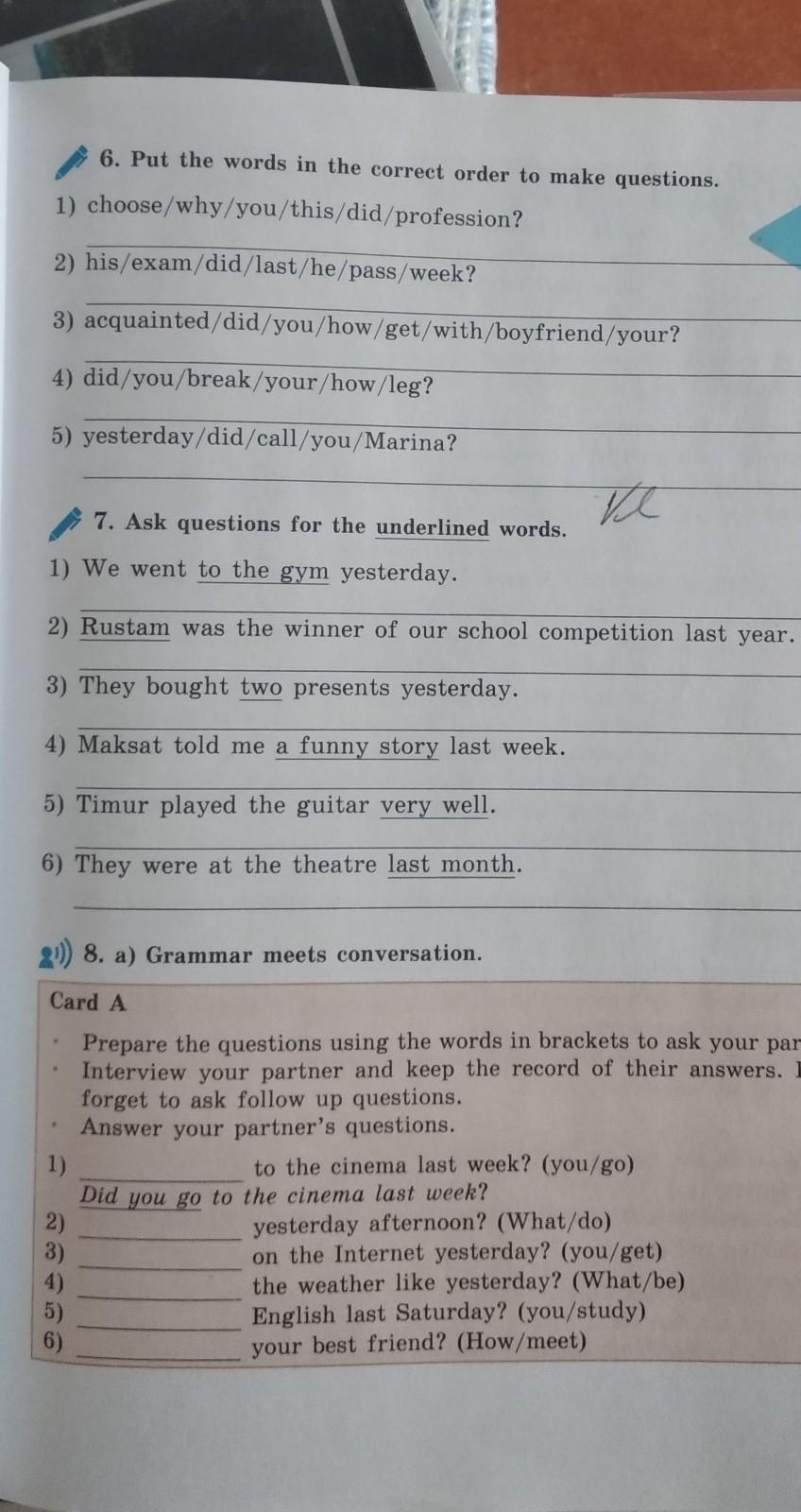 Нужно просто переделать предложение так чтобы подчеркнутое слово было ответом.