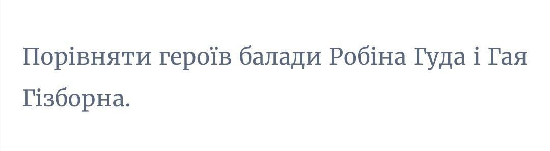 Ответ:Робін Гуд – герой захисник, який допомагає бідним, бореться за справедливість. Гай Гізборн – лицар королівської важкої кінноти. Підступний та самовпевнений, підлий та продажний, корисливий, нахабний. Місце та час подій – Англія, Шервудський ліс, XII століття.