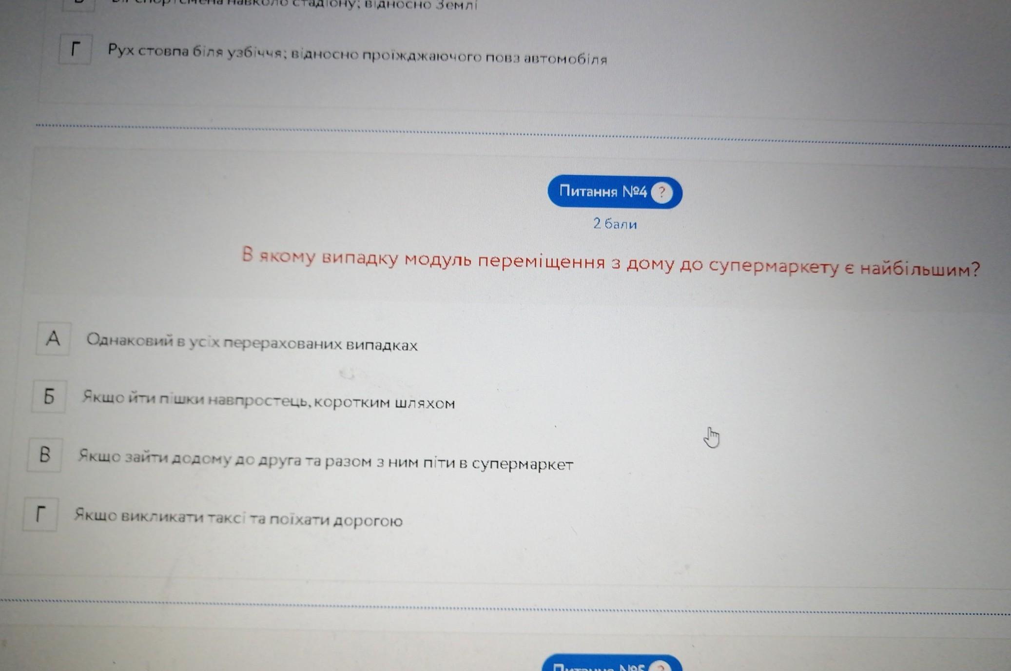 Питання №4 2 бали якому випадку модуль переміщення з дому до супермаркету є найбільшим ерахованих випадках