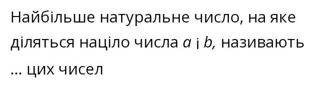 Найбільше натуральне число, на яке діляться націло числа а і b, називають ... . цих чисел СРОЧНООООООООО
