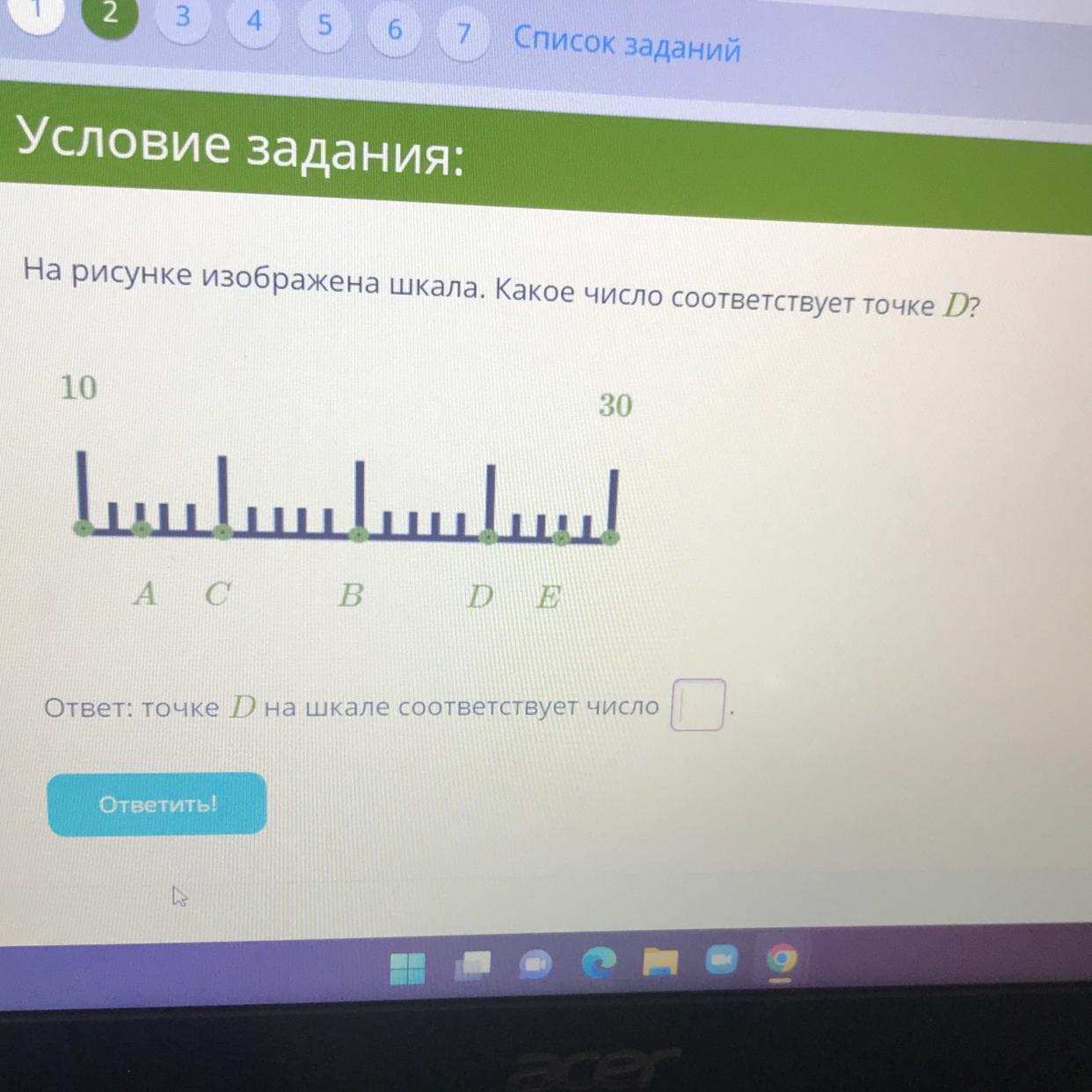 На рисунке изображена шкала. Какое число соответствует точке D?