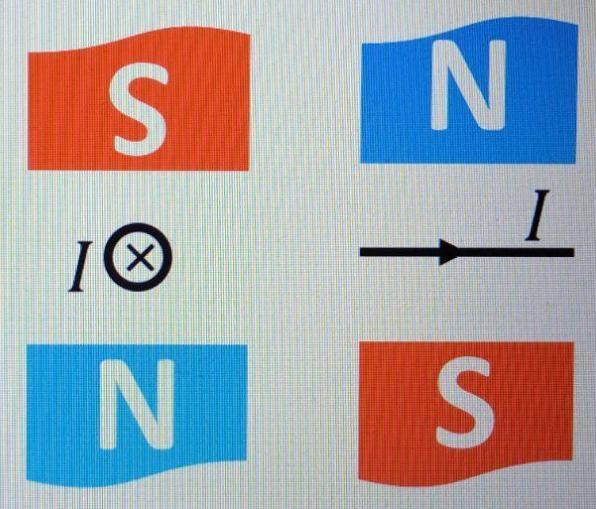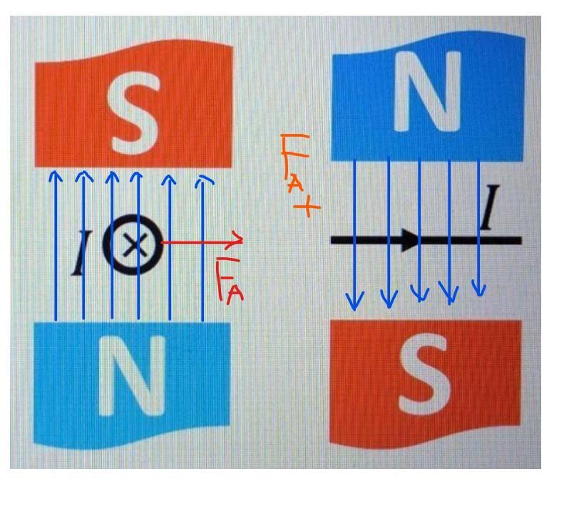 На правому малюнку хрестик означає що сила Ампера напрямлена від нас.