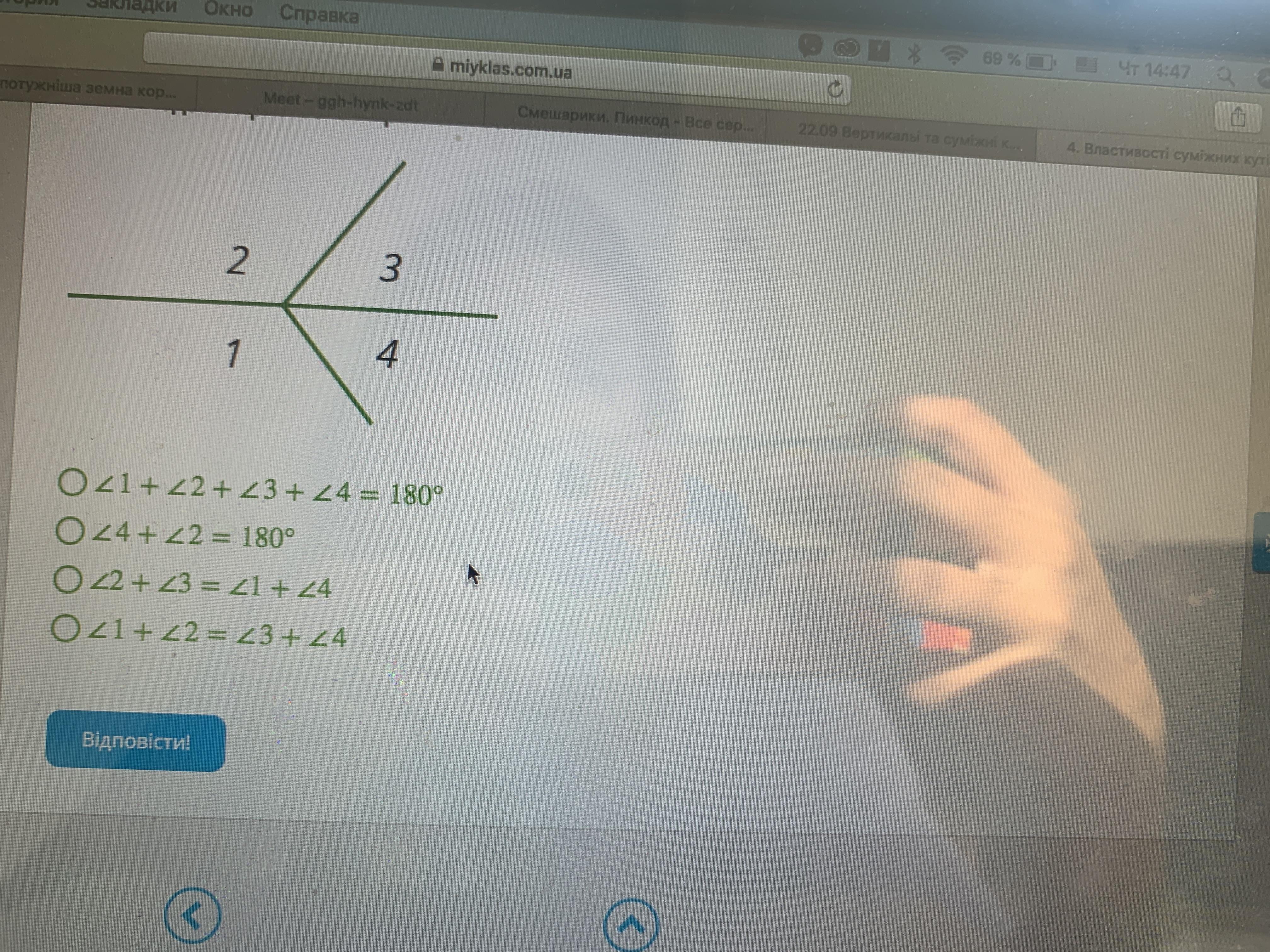 Ответ: кут.2 + кут.3 = кут.1 + кут.4