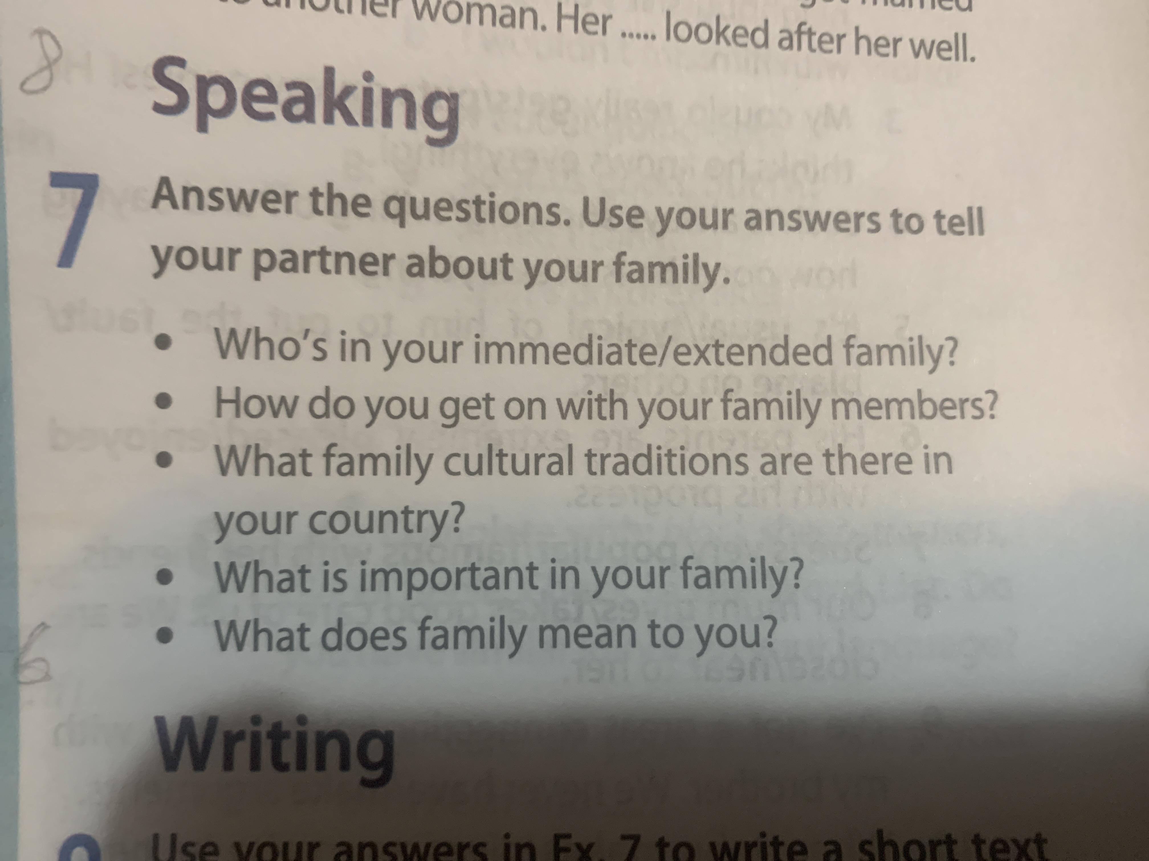 Про семью там у меня старший брат и младший брат, мама и папа и я дочь единственная