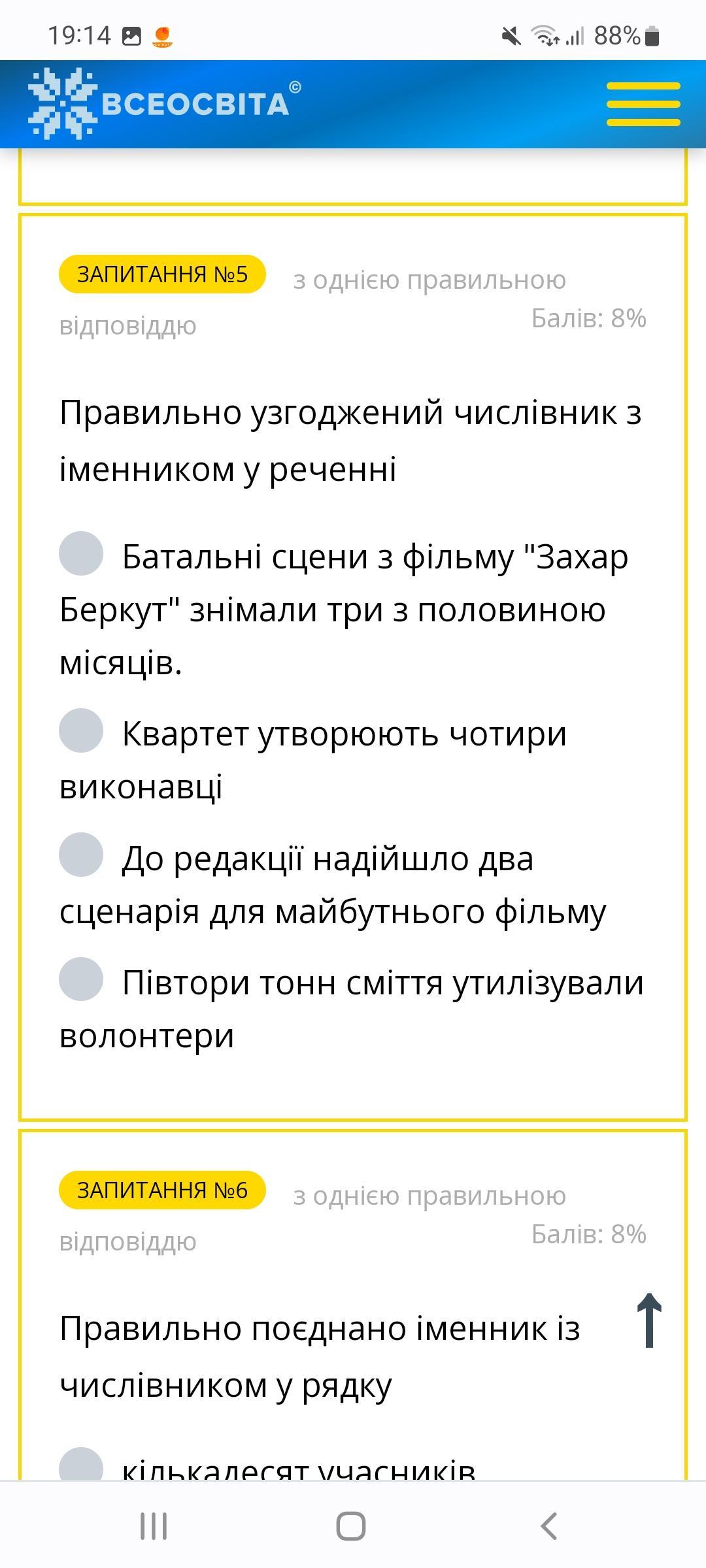 1)Правильно узгодженно числівник з іменником у наступному рядку: