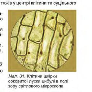 Чорне - ядро, біле - вакуолі, і чорна оболнка навкруг кожної клітинки - це клітинна стінка.