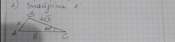 3-й способ: Опустим из вершины A перпендикуляр AD на прямую BC.Поскольку полученный прямоугольный треугольник имеет острый угол, равный 30°, его катет AD, лежащий против угла в 30°, равен половине гипотенузы AC, то есть AD=4, а DC²=AC²-AB²=48;