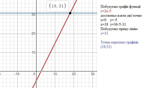 Побудуйте в одній системi координат графіки функції у=2x-5 та у = 31 знайдіть