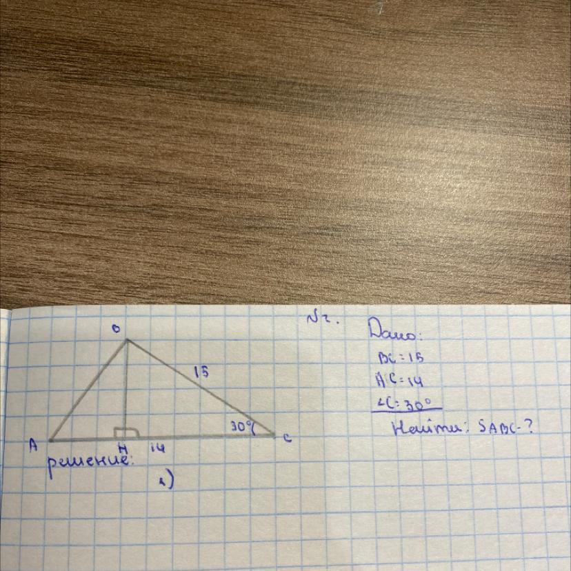 Треугольник BCH прямоугольный. Соответственно, катет против угла в 30* равен половине гипотенузы (или просто через синус считаете). Тогда высота равна 7.5. Ну и по формуле площади треугольника будет 7*7.5-52.5.