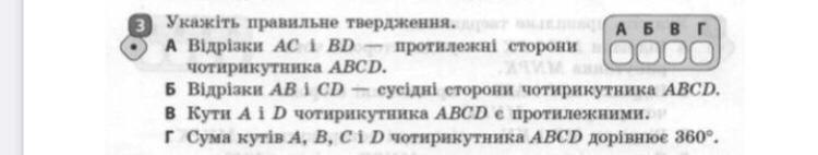 Г) сумма углов А ; В; С; D четырехугольника равна 360°.