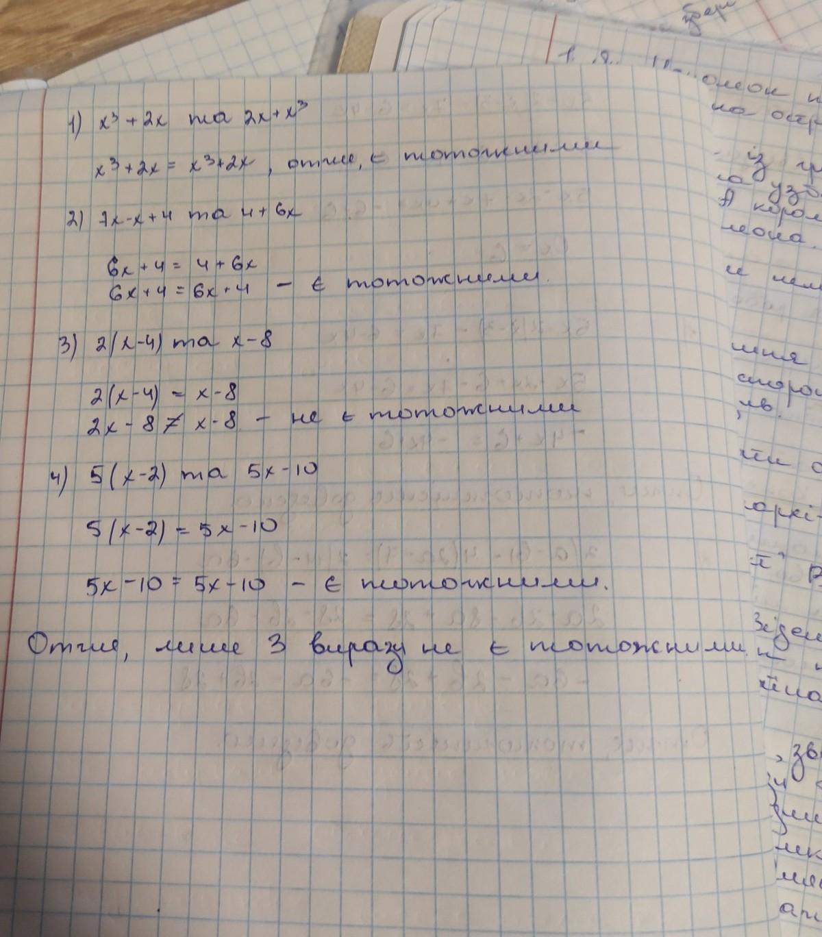 а) х³+2х та 2х+х³. б) 7х-х+4 та 4+6х. в) 2(х-4) та х - 8. г) 5(х-2) та 5х- 10. Пожалуйста быстрее !!!