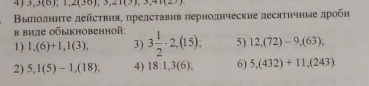 2) 5,1(5)-1,(18) = 5,(15-1)/90 - 1 18/99 = 5 7/45-1 1/5=4 (7-9)/45=3 (52-9)/45=