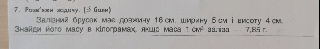 Пошаговое объяснение: 16×5×4=320 см куб. 2) 7,85×320=2 кг 512 г