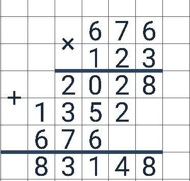 1). 5,16+1,6=676 2). 67,6×1,23=8,3148
