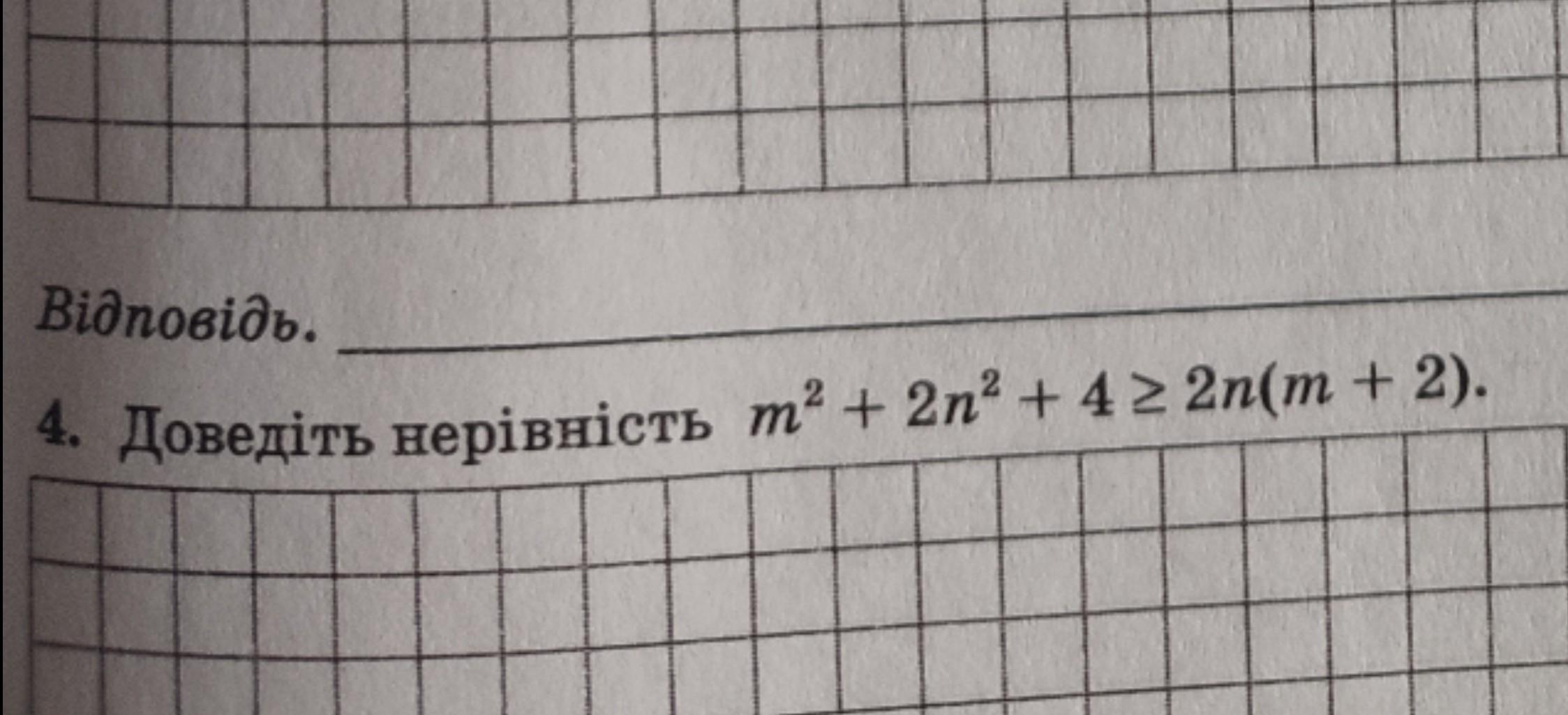 + ( n² - 4n + 4 ) = ( m - n )² + ( n - 2 )² ≥ 0 як сума двох квадратів .