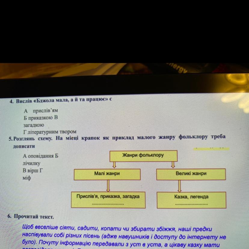 Малі жанри - А)оповідання; Б)лічилка;