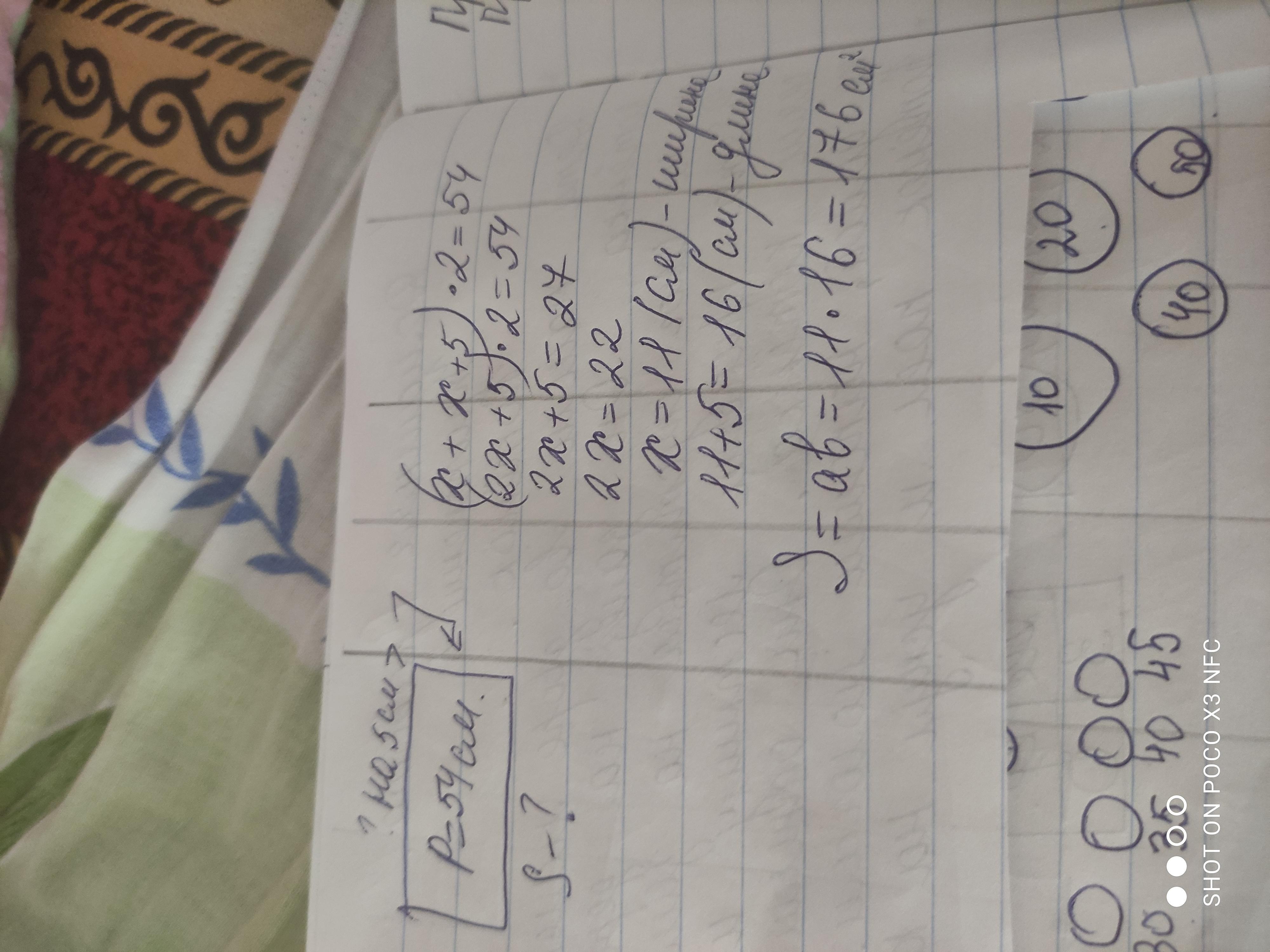 2. Периметр прямоугольника равен 54 см,длина на 5 см больше ширины. Найдите площадь прямоугольника .