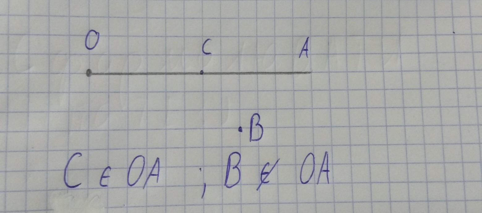 Накресліть промінь ОА. Позначте точку С, яка належить цьому променю та точку В, яка йому не належить. Зробіть відповідні записи.